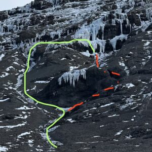 Á Kerlingafjallasvæðinu er aðeins ein klifurleið þekkt, en það er á drangan Kerlingu.