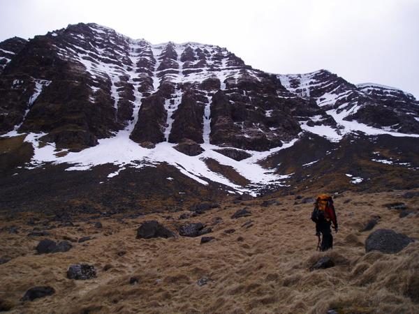Klifrið er tvær spannir, það gengur að vera bara með eina exi en maður myndi helst ekki vilja vera án hennar.