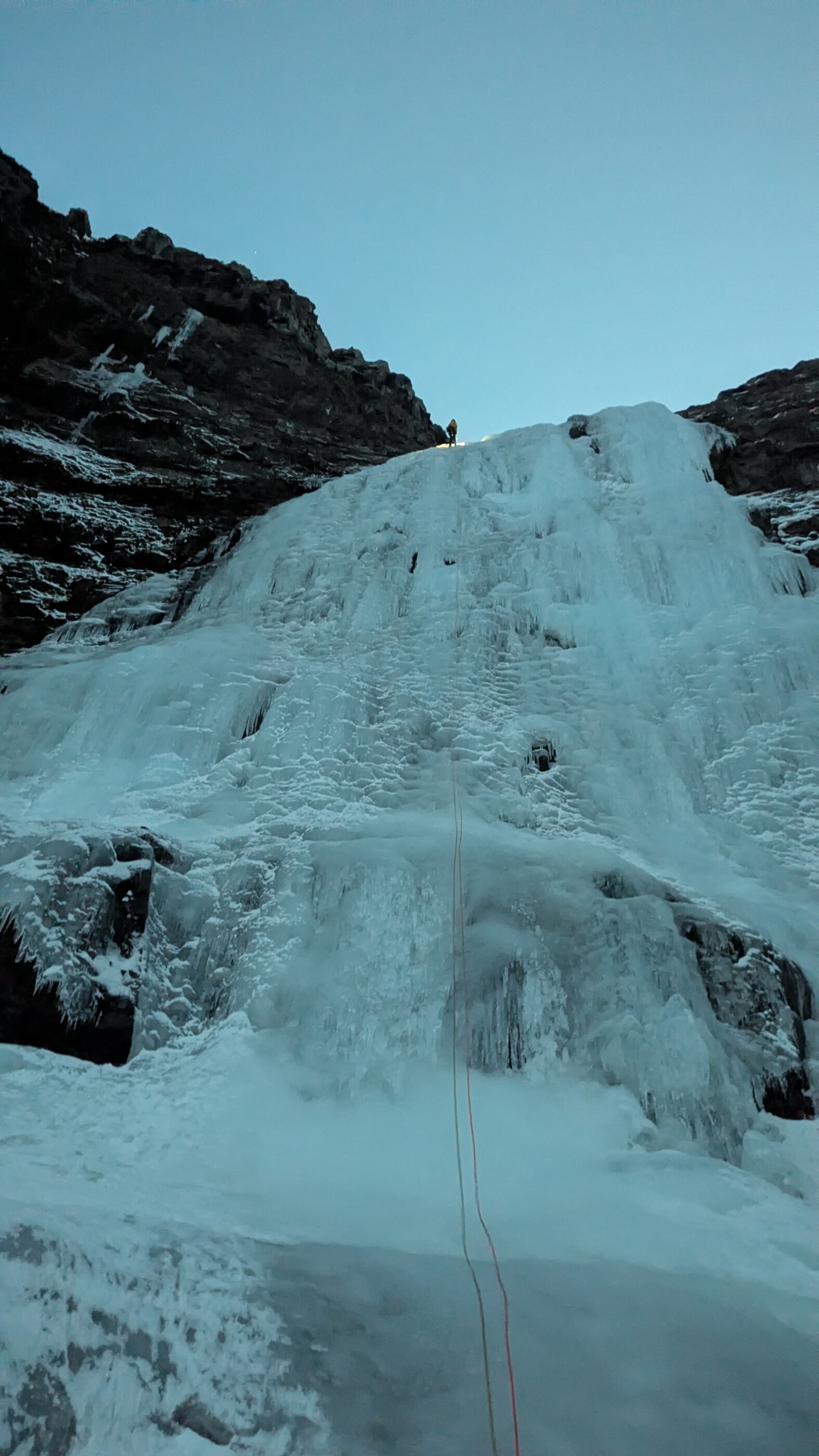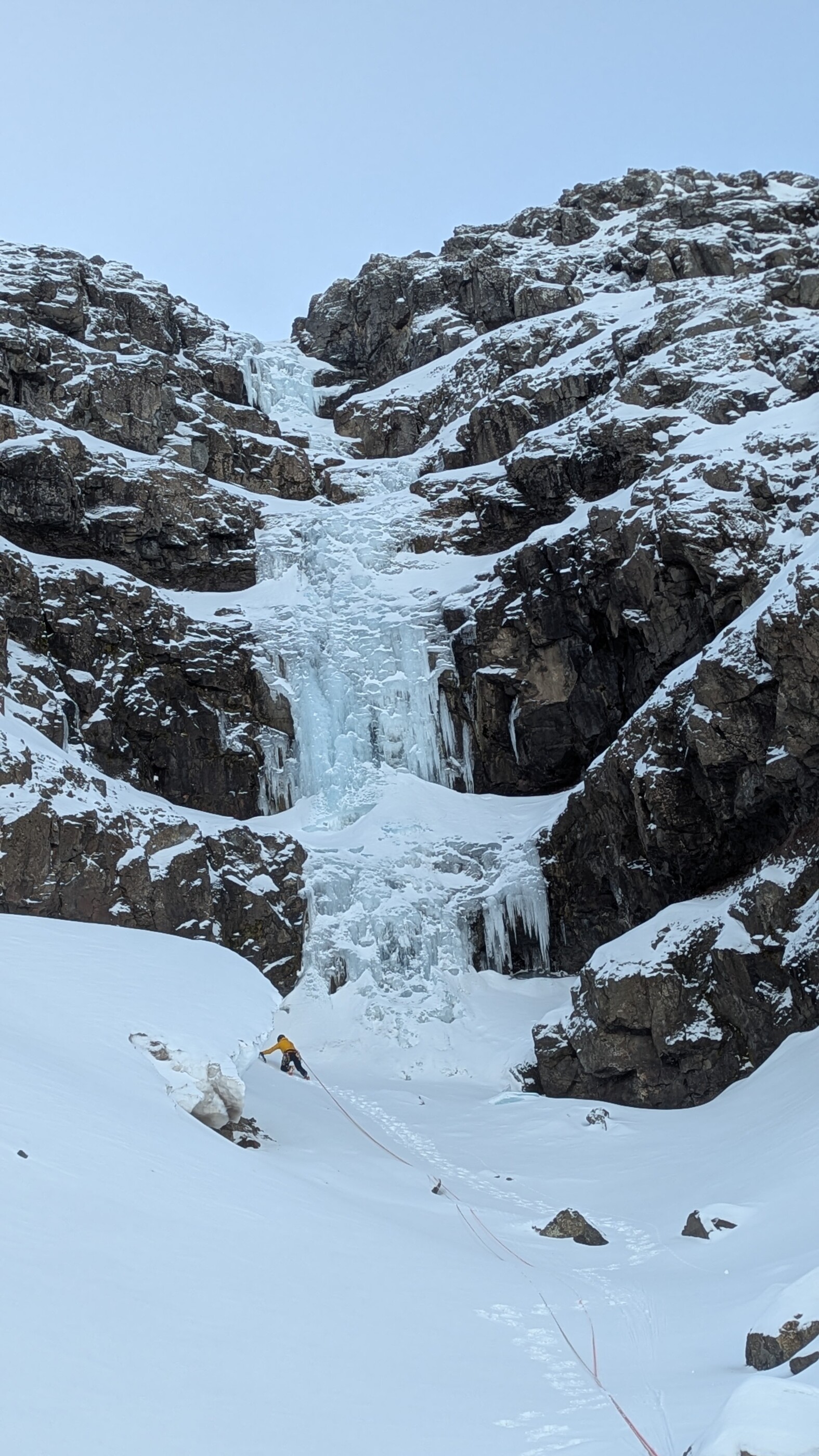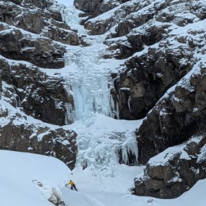 Ef snjór er ekki of mikill þá er vel þess virði að ganga upp hundrað metra brekkuna til þess að klifra aðra 120-140 metra af ís. Þannig fæst langur og ánægjulegur dagur af ísklifri.
