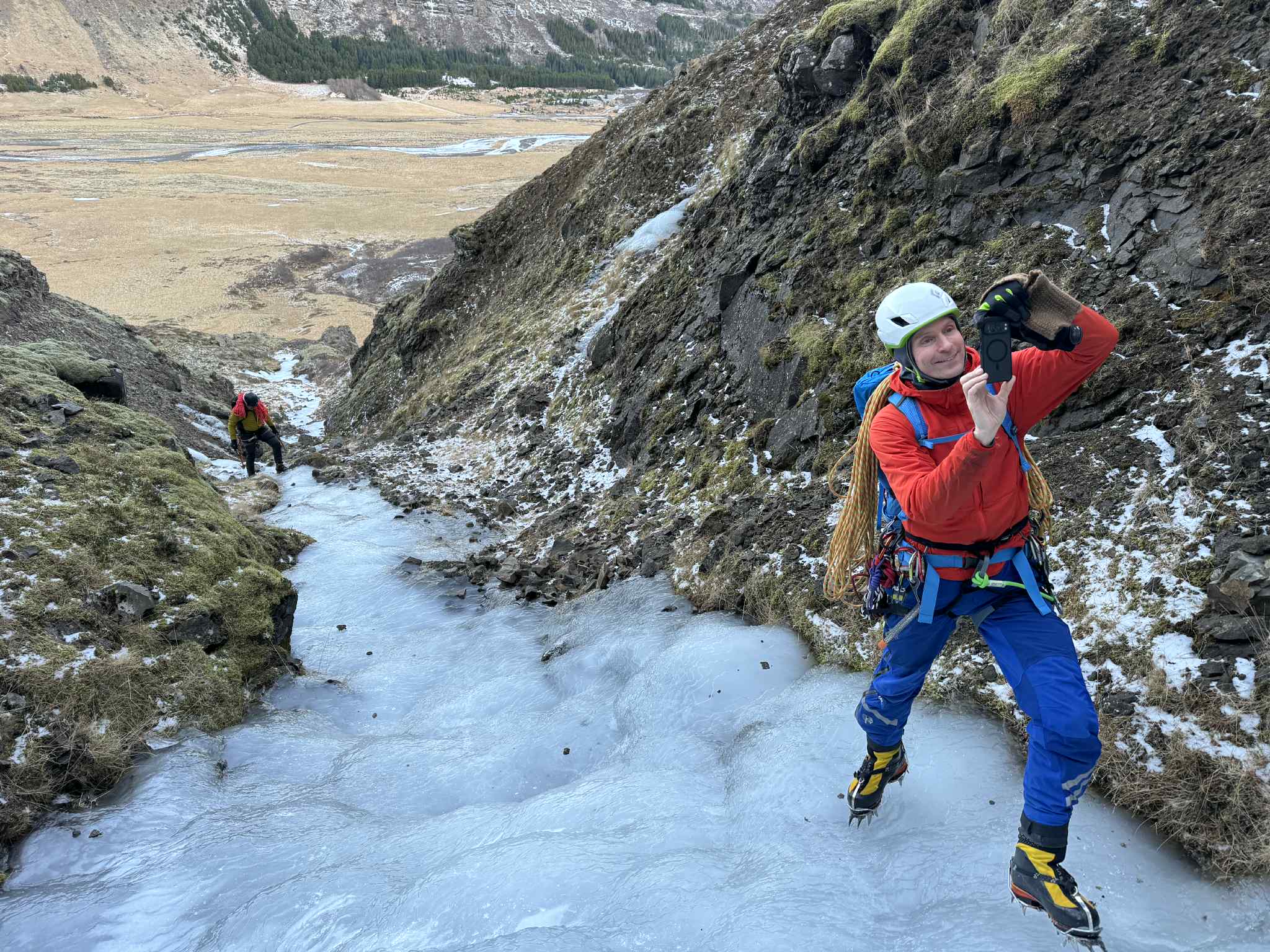 Annar skemmtilegur WI3 30m upp gilið hægra megin